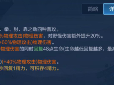 掌劲起手,造成一次(+60%物理攻击)物理伤害,对野怪伤害额外提升20%。