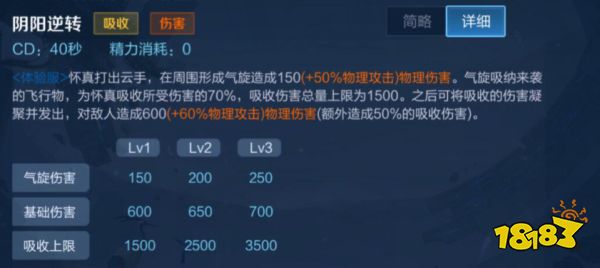 怀真打出云手,在周围形成气旋造成150(+ 50%物理攻击)物理伤害。气旋吸纳来袭的飞行物,为怀真吸收所受伤害的70%,吸收伤害总量上限为1500.之后可将吸收的伤害凝聚并发出,对敌人造成600(+60%物理攻击)物理伤害(额外造成50%的吸收伤害)。