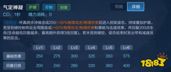怀真跨步冲锋造成250(+ 30%物理攻击)物理伤害后进入招架姿态,持续叠加护盾若受到硬控制将反击周围造成(+60%物理攻击)物理伤害和晕眩与击退效果,并回复200点命(生命越低回复越多,最高额外获得3倍回复)。若未受到硬控,姿态结束时发出带有减速果的反击。