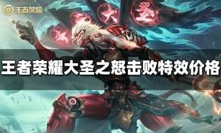 王者荣耀大圣之怒击败特效价格是1500点券,获得方法是购买斗战胜佛礼包获得,礼包价格20点券,限购150个,累计150次必得礼包内全部局内特效,礼包上架时间是1月4日-12月31日。