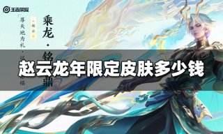 王者荣耀赵云龙年限定皮肤价格是1788点券,品质是限定传说,标签为龙年限定,购买好运60卡后首周仅需1072点券即可购买,参与【集龙限,聚文明】活动,收集龙限皮肤,可以解锁局内乘龙、皮肤闪光海报等奖励。