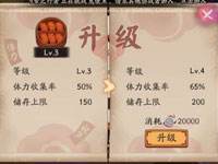 | 等级 | 消耗勋章数 | 体力收集率 | 存储上限 |