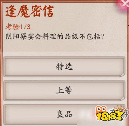 《阴阳师》逢魔问答“阴阳寮宴会料理的品级不包括”答案