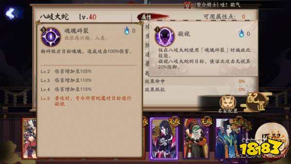 首先我们来看看八岐大蛇的一技能魂魄碎裂,这是一个不耗火的单体输出技能,其他地方没有什么出彩的,不过升到满级之后将会质变,得到凝视效果,这一效果能无视对方20%的防御,大大提高了1技能的伤害能力。