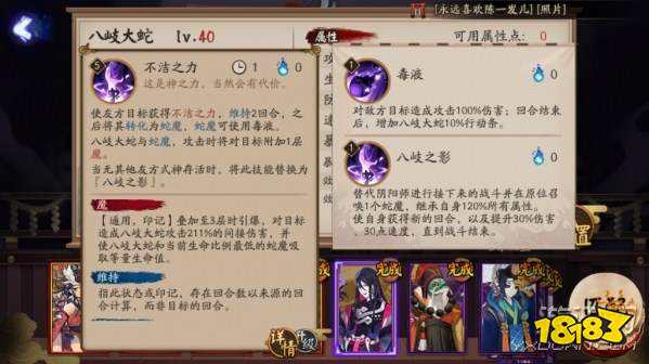这个技能说白了就是友方场上的蛇魔越多,八岐大蛇的输出越恐怖,所以可以配合几个保护性的式神让八岐大蛇的输出最大化。