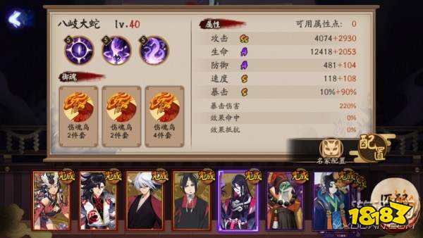 作为一名输出类式神,八岐大蛇可以选择二号位用攻击或者速度类御魂,四号位固定攻击,六号位固定暴击的这一套御魂搭配,在这里建议大家在二号位使用速度类御魂,能更好的扩大八岐大蛇的2技能效果。