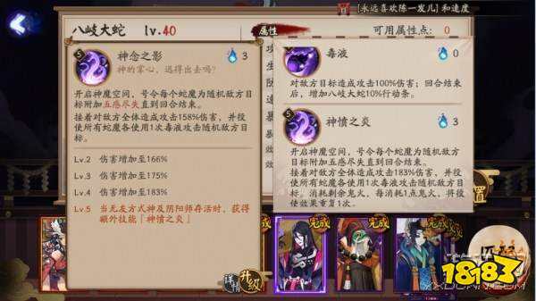 而这个技能升到5级之后则会获得神愤之炎效果,当场上只剩八岐大蛇时将会消耗剩余的鬼火让蛇魔重复攻击效果,可以说是翻盘利器了!
