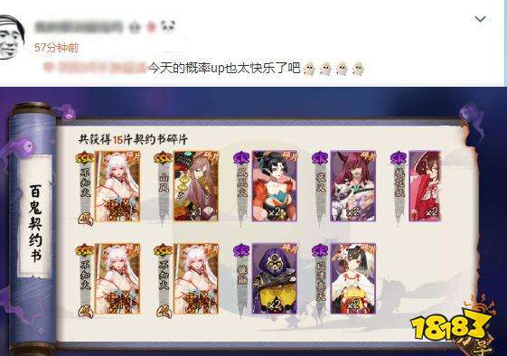 除了不知火以外,这次的SP的掉落率也很感人。平常百鬼夜行能看到的也就SSR,SR算是最好了,SP不仅有等级要求,而且很难出现,但是这次却有不少玩家砸到了SP稻荷神、小天狗以及茨林!