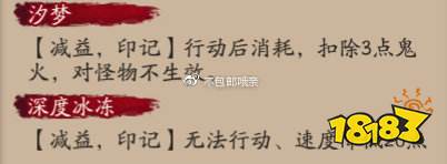 汐梦:减益印记,不可驱散。行动后消耗,扣除3点鬼火,对怪物不生效。