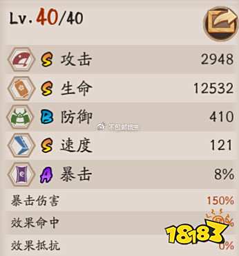 攻击2900+,比较一般,S档中垫底的存在;速度121,非常优秀;暴击8,一般。