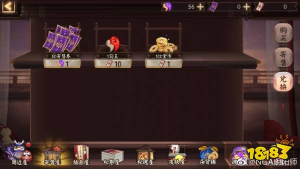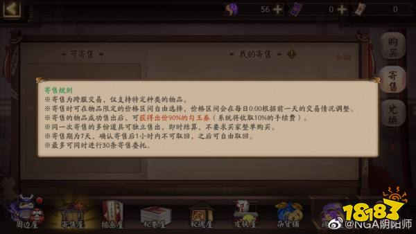 *商店新增寄售屋功能,可将特定物品寄售供其它阴阳师购买,成功售出后获得勾玉券,可用于兑换勾玉和金币。