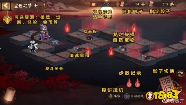 比较标准的大富翁玩法,可以使用随机骰子或者指定步数骰子爬塔,会触发各种事件:战斗,宝箱,绘画,问答等来获得奖励。