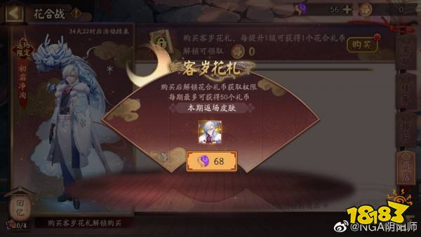 阴阳师大人们可以在'花合战'-'商店'界面,购买客岁花札,购买后花合战等级每提升1级,即可获得一个'花合礼币',每期花合战最多获得50个礼币。