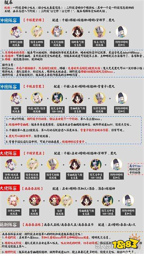 3.其他萌新大佬阵容都有推荐,附带式神御魂搭配,胧车机制及操作细节,具体看图。