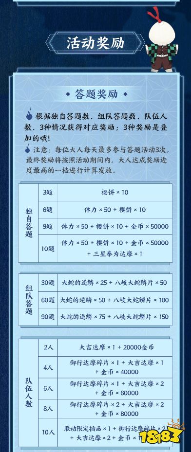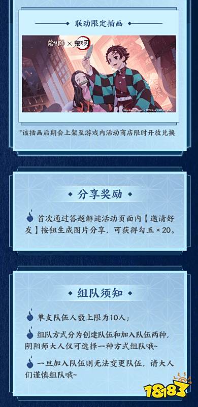 ※大人们可邀请好友加入解谜队伍,根据组队人数可解锁御行达摩碎片、联动限定插画等多重奖励!