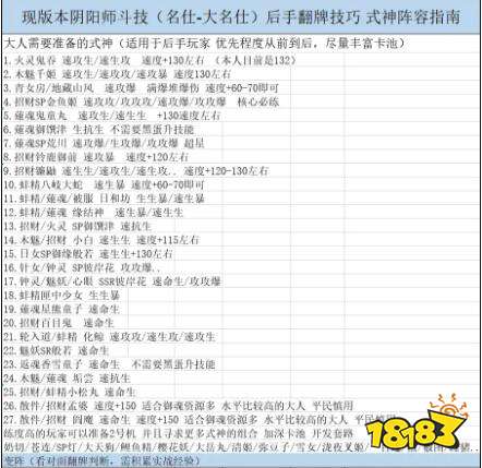 首先是大人需要准备的式神(适用于后手玩家 优先程度从前到后,尽量丰富卡池)