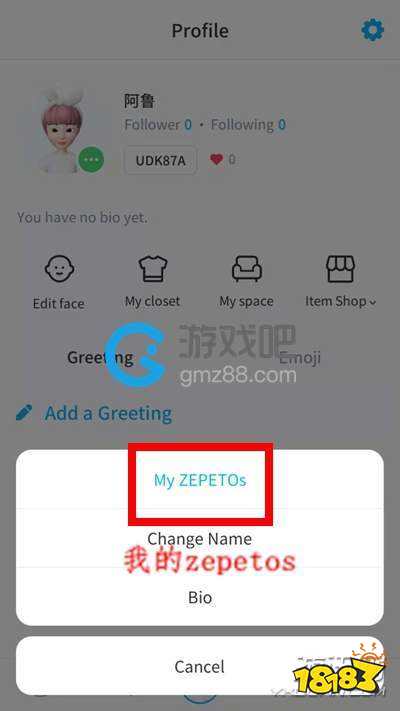 3、跳出一个图框,点击最上面那个选项:【我的zepetos】。