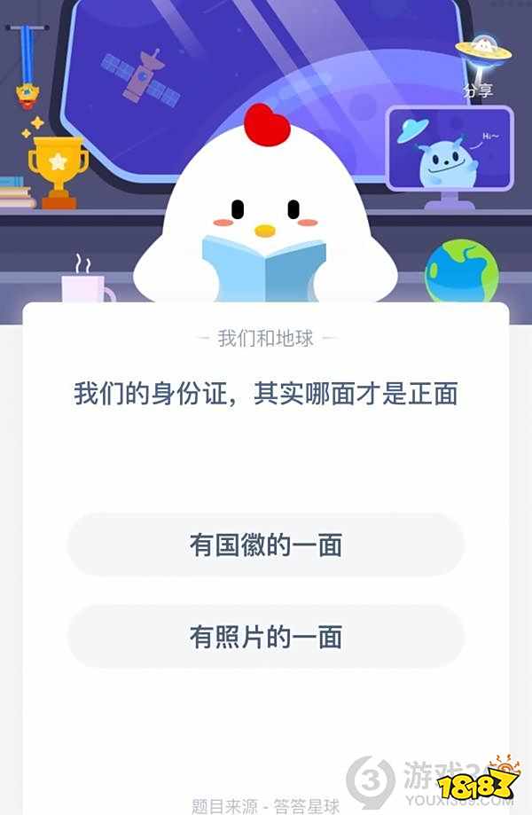 有国徽的一面还是有照片的一面我们的身份证其实哪面才是正面,可能还有很多小伙伴不知道其实身份证哪面才是正面,下面就跟小编一起来看看今天的正确答案吧,选对答案的话就可以领取180g小鸡饲料了!