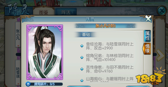 我们每个阵灵都是有情缘加成的。当我们有情缘加成的阵灵同时上阵的时候就能增加我们的属性战力了,每个阵灵的情缘都是不同的,只有搭配了有情缘的阵灵一起上阵才能激活情缘的加成属性。