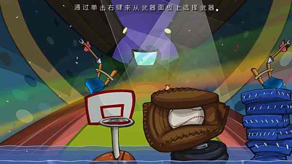 游戏中有丰富的武器道具系统,武器从近身的拳头、棒子到远程的火箭筒,手雷等等种类齐全。道具也有和多种,有降落伞、飞行器、传送器等。