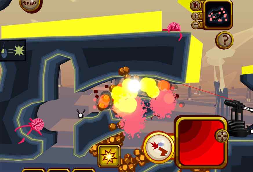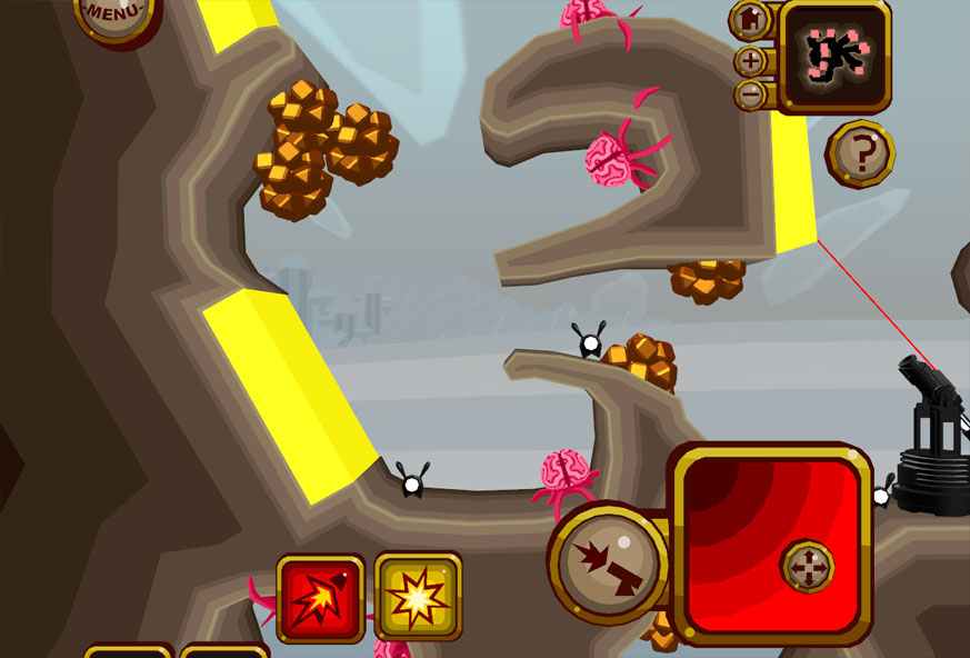 《头脑大炮》是一款大炮游戏,控制一台大炮,把粉红色的大脑们炸掉。头脑大炮头脑大炮是一款玩法简单,但是可玩性很高的益智休闲游戏,在游戏中,玩家需要操作一个大炮来消灭地图中的大脑!看来植物大战僵尸以后很多玩家都对大脑感兴趣了...玩家要利用各种反弹等物理因素,并掌握好引爆时机才能成功完成任务!鼠标拖动右下角的准星改变大炮方向,点击大炮发射图标发射,再次点击引爆!