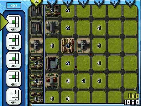 在进入游戏之后玩家面对的是一张 7x6 的方格图,玩家需要将第一纵列的建筑指数提升到目标值。在消除第一列之后继续消除下面一列,以此类推。