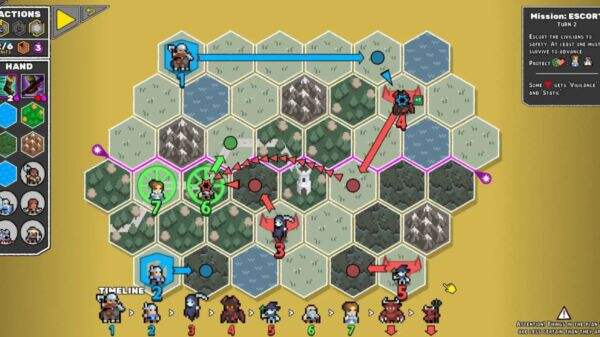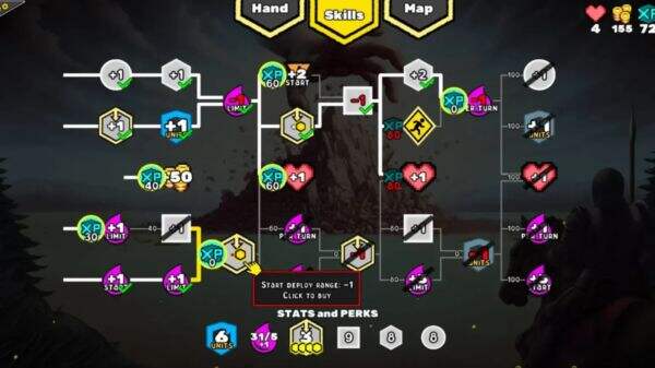 2. 关卡推进流程:进入游戏后选择拥有不同能力和卡牌的英雄,接着选择前进路线开启战斗。每回合你可以使用两张手牌,放置卡牌后点击行动按钮,单位会按时间顺序行动。