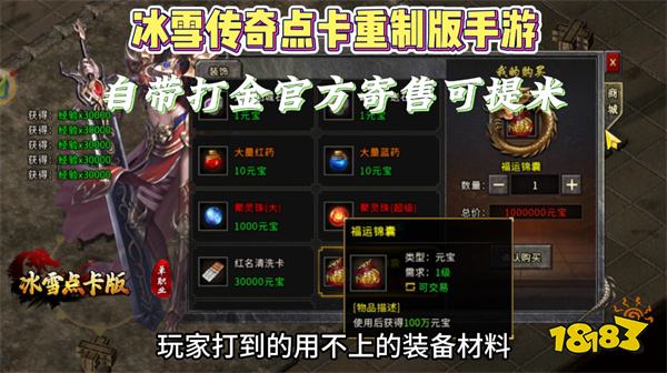 《冰雪传奇》现在有多火,看各路讨论就知道。游戏里的“搬砖”生态也确实挺成熟,成了不少人赚点零花钱的热门选择。不过市面上版本鱼龙混杂,有些坑钱的“快餐服”是真让人防不胜防。今天就给大家扒一扒,避开那些坑,重点聊聊三款公认靠谱的冰雪系打金服。我会从起号成本、去哪儿打金、怎么把东西换成钱这几个角度,给你讲得明明白白。不管你是喜欢挂机、享受手动操作,还是爱琢磨策略,总有一款适合你。对了,《冰雪传奇点卡版》最近全平台开测了!经典怀旧味儿十足,想知道攻略、拿礼包的,可以多关注“18183综合下载资讯”,那边的信息和福利都挺全的。