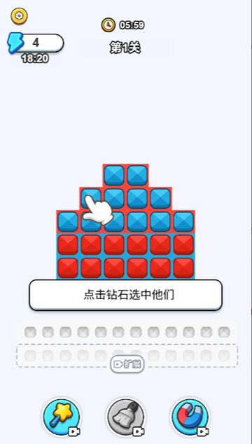 1. 进入关卡后仔细阅读图案形状和方块要求