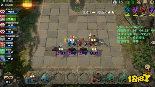 然后就是人口,连胜13回合就爆人口到7,如果整体星级还行就不搜子,17回合或者21回合到8人口之后再去搜子,如果星级不行那肯定7人口就要提前搜一波稳固质量