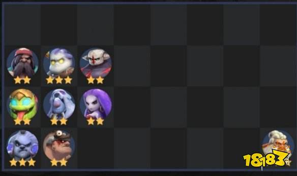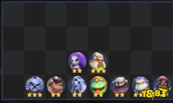 这也是我们的最基本站位,当然了,当遇到六法师阵容的时候,我们的双海族可能就不太顶用了,我们够可以按下图站位,把三星利爪和其它棋子分开站,这样龟甲长老会优先放大招给利爪,我们的胜算就会大很多。