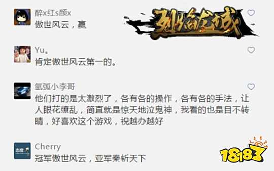 来自霸业1-256服的傲世風雲,作为最老服务器的最强公会,一直都是《烈焰龙城》神话般的存在,云集了众多高战大佬。傲世風雲的前身是首届跨服联赛亚军風絕雲殺,首届比赛之后他们招贤纳士进行了重组,终于在第二届跨服联赛中勇夺桂冠!本届比赛傲世風雲仍是大家眼中最大的夺冠热门,这一点在《烈焰龙城》的微信留言中可见一斑——