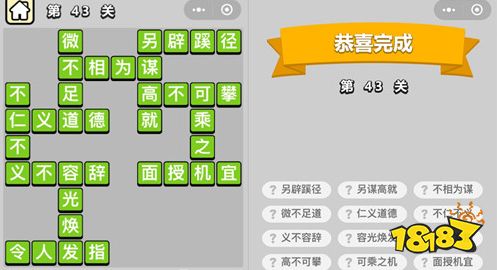 以上就是由18183小编为大家带来的成语升官记第43关答案介绍。希望能帮助到大家,祝大家游戏愉快!