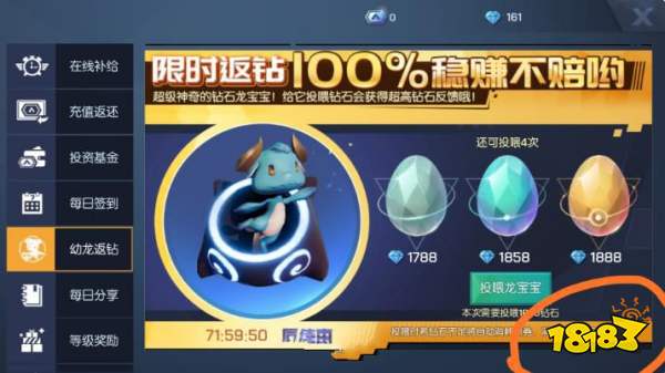 2、wdnmd,策划把幼龙返钻取消了,这样一来,第一天不可能到600钻石了,大家只能尽力而为了。。。。也可以选择不肝4个号,或者肝到第二天