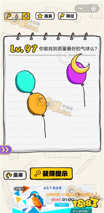 答案:把气球依次拖到月亮上,不会破碎的就是质量最好的气球。