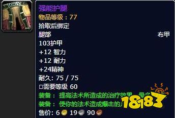 除套装外,第三阶段萨满最佳鞋子。智力和精神能弥补萨满蓝量的短板。