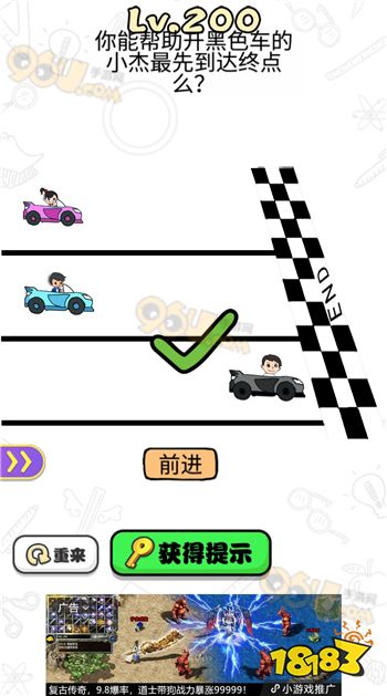 第200关问题:你能帮助开黑色车的小杰最先到达终点么?