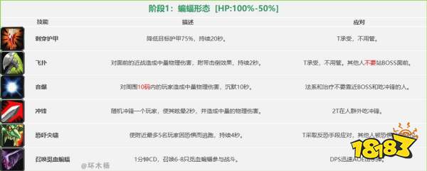 治疗:奶好全团,保持吃冲锋的副T血量健康。小蝙蝠下来后给法师套盾。P1不要靠近BOSS以免吃到音爆。