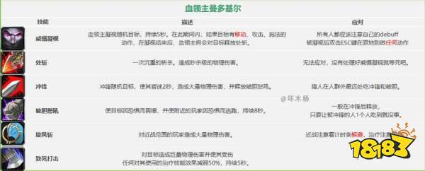DPS:看好BOSS的旋风斩,放过了再上去打。全程注意血领主的凝视点名,被点之后千万别有任何动作。