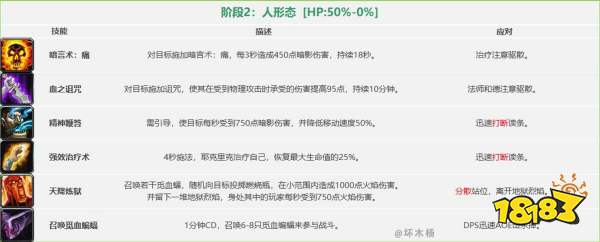 DPS:P1全力输出,近战被恐惧要尽快回位以免被冲锋,法系要优先A蝙蝠。P2要注意打断,尤其是治疗术。并保持移动不要踩火。