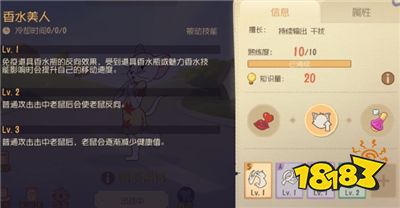 技能升到2级后香水的散播时间更久,而且普攻时间冷却显著,可以弥补图多的攻击频率缺陷