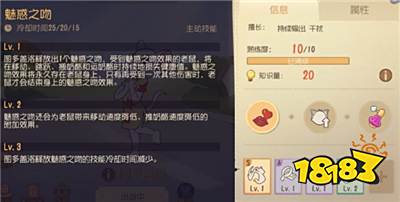在技能升到3级后攻击老鼠持续掉血,这个效果比魅惑之吻还要缓慢,所以不推荐升3级。当然如果你喜欢玩普攻 魅惑之吻的双重掉血套路也可以升