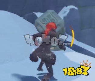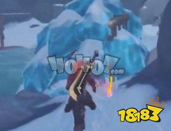 来到河底之后,看到一个被冻住的雪堆,需要使用深红之石来打碎,我们走到尽头,这里有一座假山,使用大剑角色将这些石头打碎,能够看到一扇木门和一个绯红玉髓,然后将这道门打开,能够看到有一个深红之石。