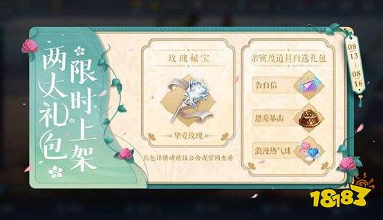 购买红蓝对决(1日),可额外随机获得以下之一:挚爱玫瑰*1、亲密玫瑰*1、浓情玫瑰*1、浓情玫瑰*2。