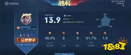7、金银牌是根据玩家在对局内的表现来决定的,和自己的人头、死亡、助攻有很大的关系,战绩越好获得的可能性就越大。