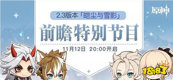 1、11月12日(本周五)晚20:00,《原神》2.3版本「皑尘与雪影」前瞻特别节目即将开启~本期特别节目将为大家带来2.3版本的更新内容,直播间内还有兑换码等福利“掉落”。