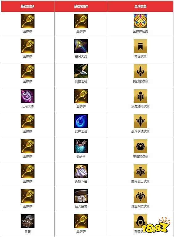 云顶之弈s6金铲铲合成表