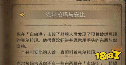 1,首先我们来到二十年后蛮牛谷,来到港口找克尔拉玛,我们这个时候需要准备虾饼交换克尔拉玛的东西,虾饼需要麦粉以及虾子制作;