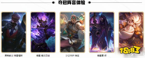 还有夺冠之后阵容的体验活动,下面一起来看看有几套阵容可以体验吧!