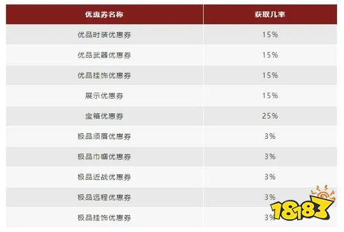 在【沙场秋点兵】活动中兑换获得【优惠券幸运宝箱】,打开优惠券幸运宝箱,随机获得以下优惠券